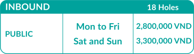| PUBLIC RATES (VND) | 9 Holes | 18 Holes |