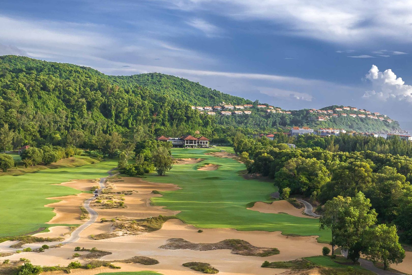 The treated water is repurposed for irrigating the golf course greens and landscaping within the resort. This practice conserves natural water resources and enhances the living environment, creating a sustainable and verdant space for the resort.
