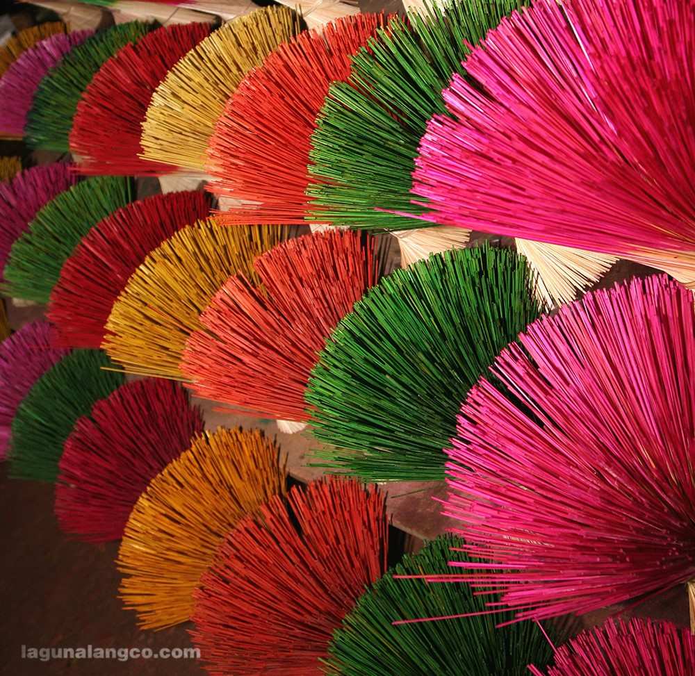 Những bó nhang thường được nhuộm đủ màu: xanh, đỏ, vàng, tím…và bó lại thành chùm trông như các cụm hoa rực rỡ. Với người Huế, nguyên liệu làm nhang rất quan trọng, nhất là nhang thuốc bắc, phải làm đủ các vị thuốc bắc như quế chi, cam thảo, tùng, trắc, đinh hương, hoa hồi… Đừng quên mua về bó hương thuốc bắc làm quà bạn nhé.