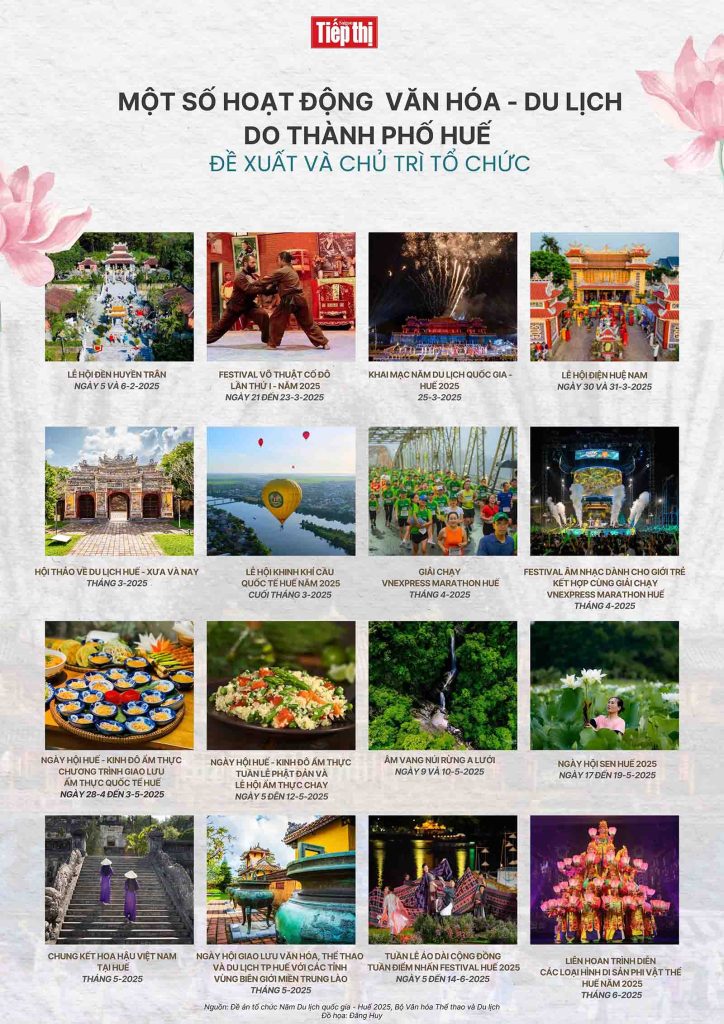 Ngày 1.1, Trung tâm Bảo tồn Di tích Cố đô Huế cho biết, năm 2025, Huế vinh dự đăng cai Năm Du lịch quốc gia, kết hợp với Festival Huế 2025, kỷ niệm 50 năm Ngày giải phóng tỉnh (26.3.1975 – 26.3.2025) và chào mừng Huế trở thành thành phố trực thuộc Trung ương.