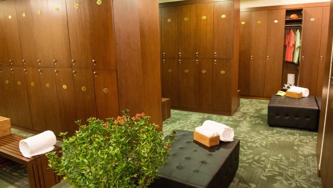 Khu vực phòng thay đồ được thiết kế với 180 tủ cho nam và 123 tủ cho nữ, phù hợp cho các giải đấu golf lớn.