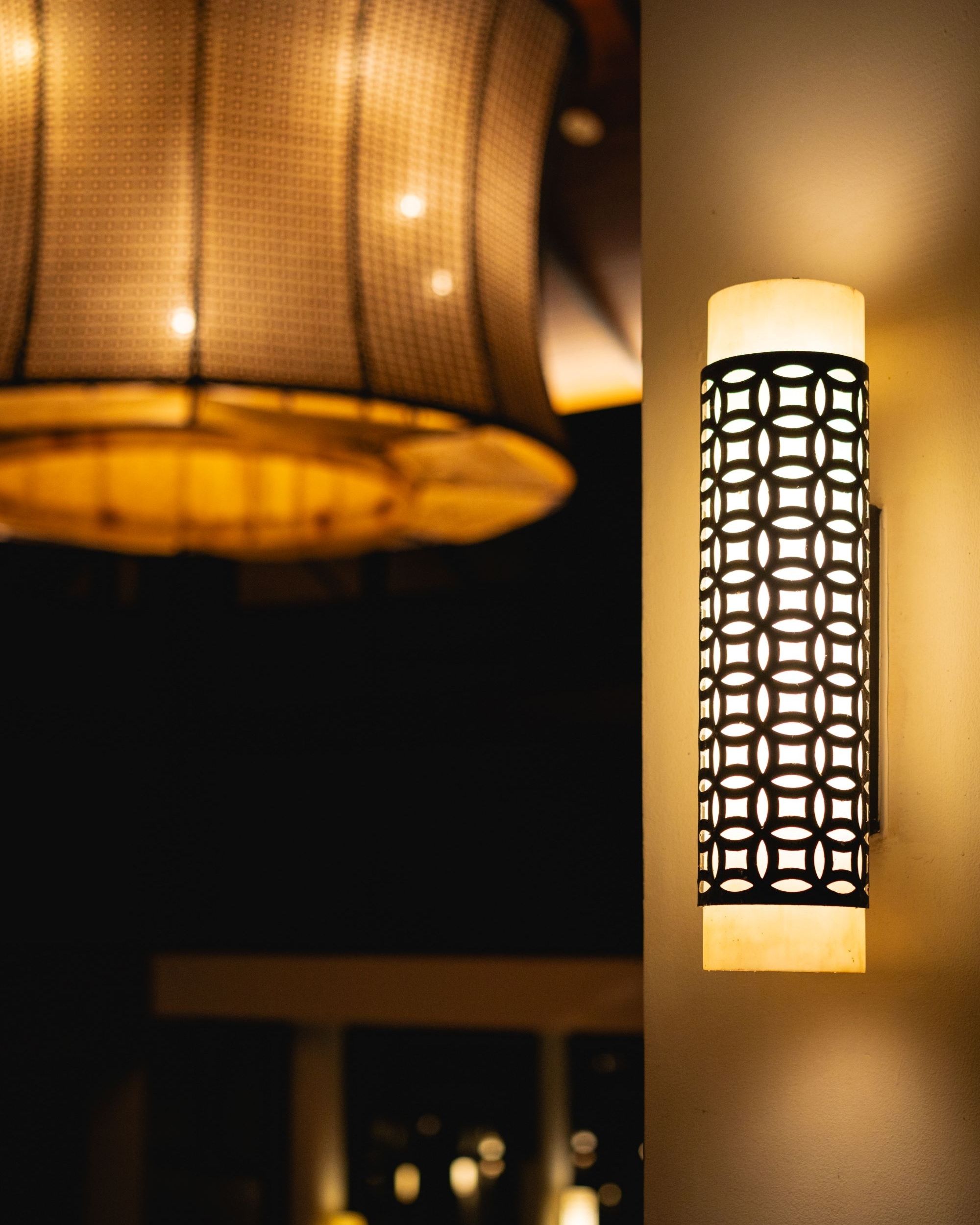 Khi ánh sáng xuyên qua những ô họa tiết, những chiếc bóng đổ lao xao in lên sàn gỗ sẫm màu tạo nên một vũ điệu ánh sáng mê hoặc, biến không gian nghỉ dưỡng thành một tác phẩm nghệ thuật sống động, nơi du khách được bao bọc bởi sự thịnh vượng và bình an của vùng đất di sản.