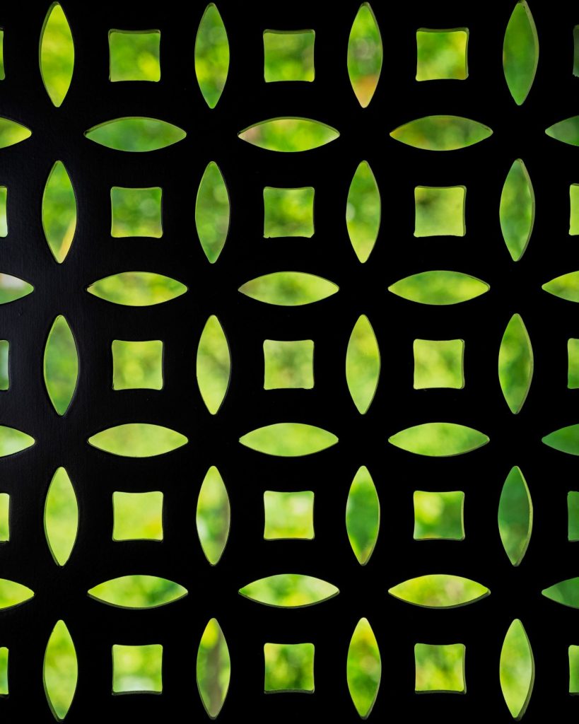 Khởi nguồn từ quan niệm ‘Trời tròn Đất vuông’ và chữ Thọ, chi tiết này hiện hữu trên các vách ngăn như một điểm nhấn mỹ thuật thanh tao, đồng thời mang theo hàm ý về sự viên mãn và dòng chảy vượng khí hanh thông.